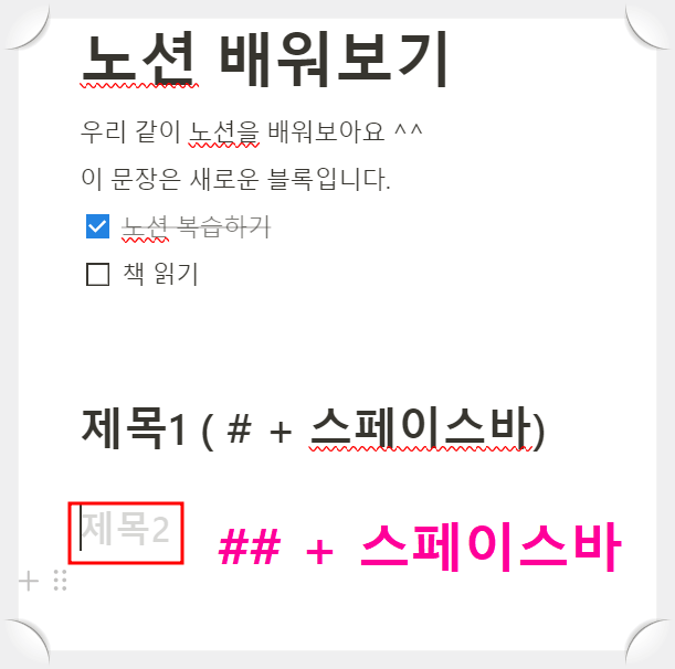 - '할 일 목록'은 많이 사용하는 블록 중 하나로 체크박스가 있어 다이어리의 'to do list' 작성하기에 아주 좋습니다.